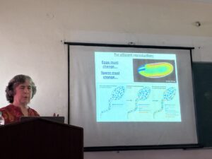 The event was organized on Tuesday, 18th November 2025, consisting of two major interactive scientific sessions, preceded by a formal inaugural ceremony. The first interactive session was on the topic “Molecular changes mediating fertility: Lessons from the Drosophila Model” by Dr. Mariana F. Wolfner, Distinguished Professor of Arts and Sciences in Molecular Biology and Genetics, Cornell University, Ithaca, USA followed by the interactive session two on the topic “Molecular Biology of male–female communication in Drosophila and its implications on human infertility issues”by Dr. Yael Heifetz, Department of Entomology, The Hebrew University of Jerusalem, Rehovot, Israel. The speakers highlighted on the key molecular changes that regulate fertility, including gamete maturation, sperm storage, and post-mating biochemical signaling in the model organism Drosophila. They also presented experimental results on how male-derived seminal proteins trigger major physiological and behavioral changes in females, influencing ovulation, immunity, and reproductive success. Female tissues respond through specialized receptors and gene networks that maintain reproductive balance. Studies on male–female communication highlight how disruptions in these molecular pathways can lead to infertility. Insights from Drosophila offer powerful parallels to human reproductive biology, thereby helping us to identify potential mechanisms underlying human infertility issues.