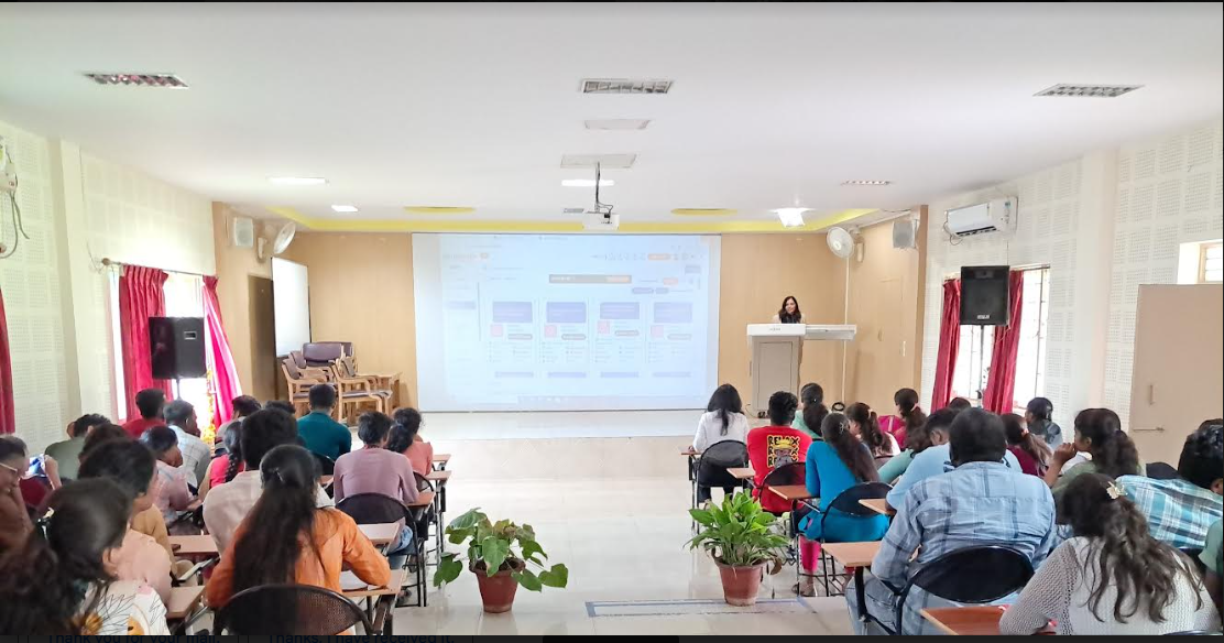 The second session was taken by Resource Person Pavitrakala had given talk on One stop platform for students seeking information on global opportunities for education, career, Life and Travel abroad. This helped a lot of students who have the plan to go abroad for carrier making. She showed how the Uniprep platform (Software) gives information about the language, culture, various courses, collages etc.